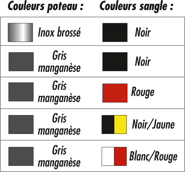 Sangle rétractable, verrouillable, longueur 300 cm, s’attachant à un autre poteau (voir nuancier).