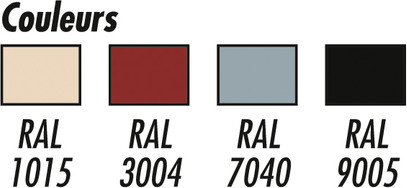 Ossature en acier Ø 22 mm avec barre de renfort Ø 16 mm, finition peinture époxy, avec tampons antibruit.