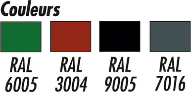 Acier zingué finition peinture poudré polyester (couleurs au choix).